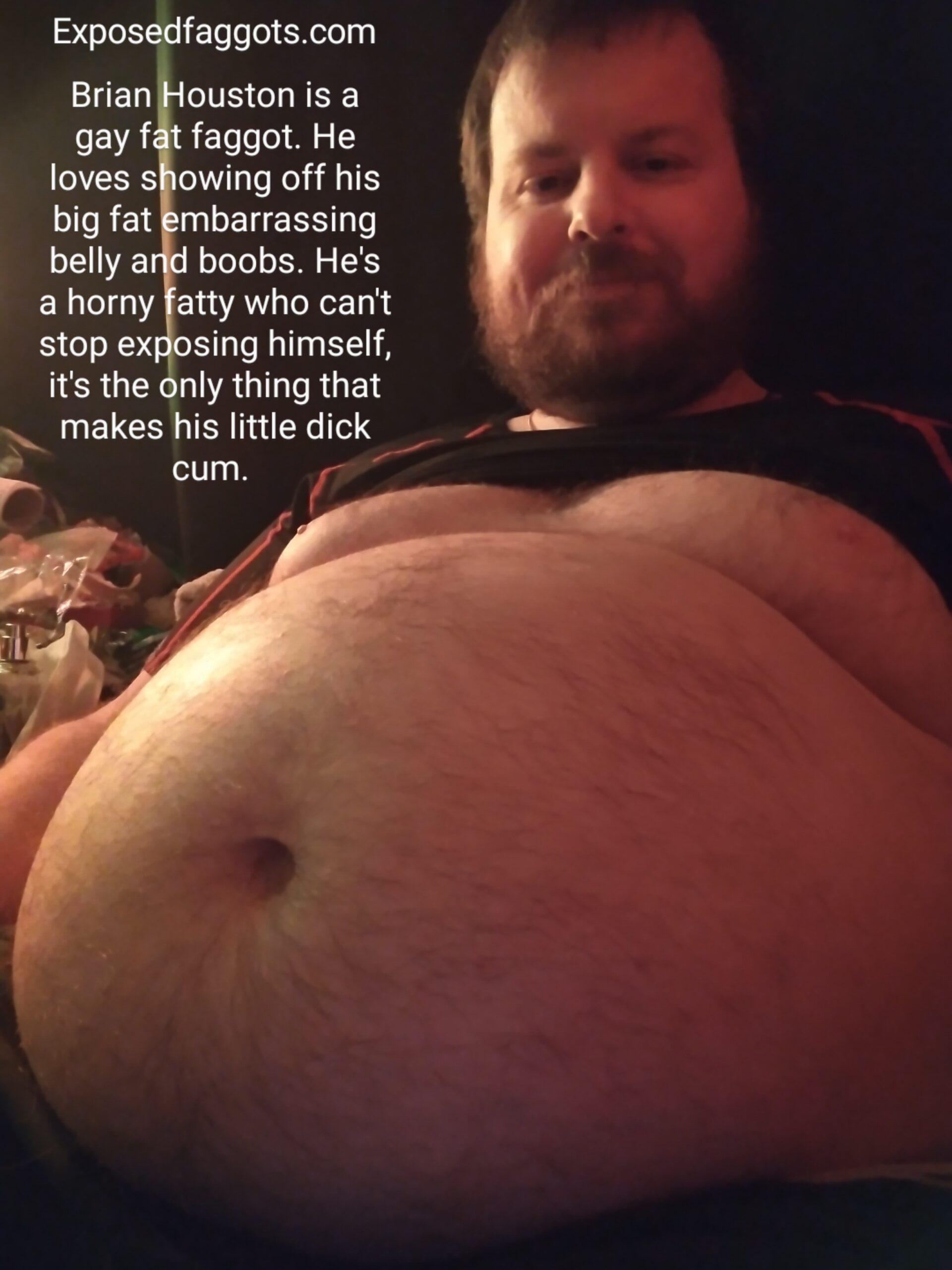 Brian Houston is a gay fat faggot who loves showing off his big fat embarrassing belly and boobs