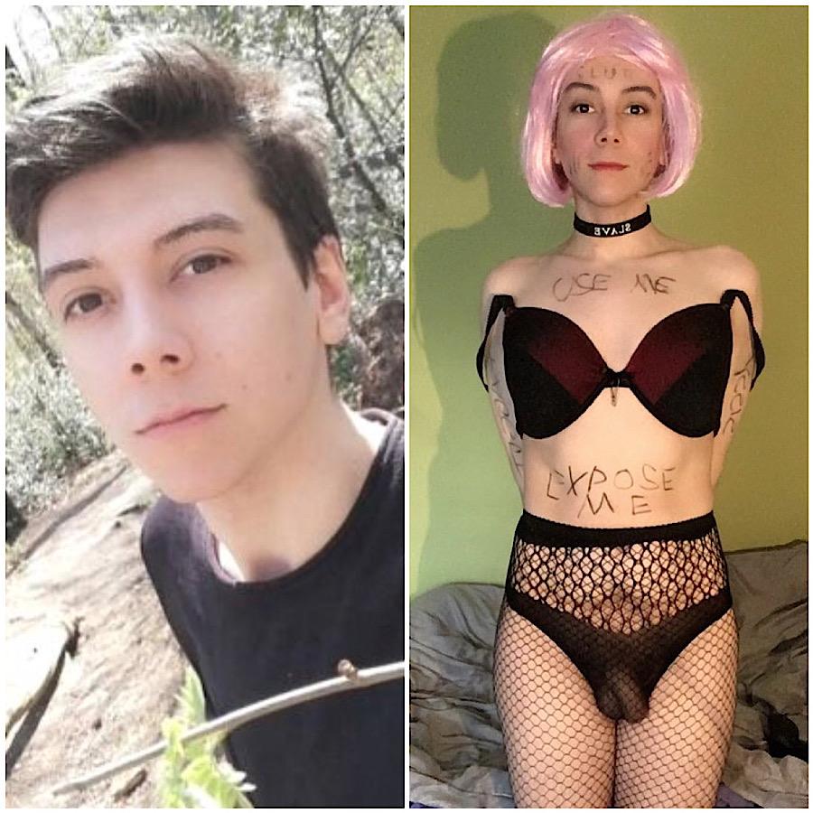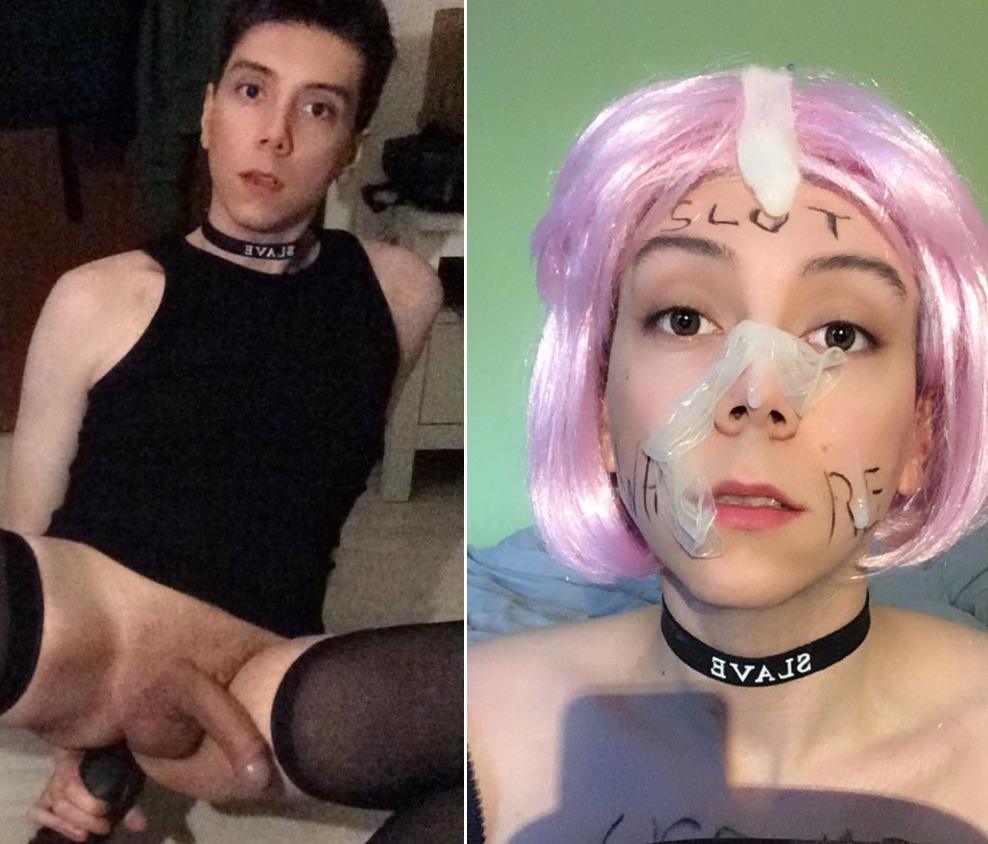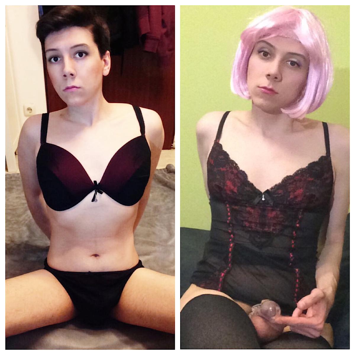I want to share my to shatter the last bits of masculinity and manifest me into the I am. On the left is me, pretending to be a man, and then me in my more natural state:
